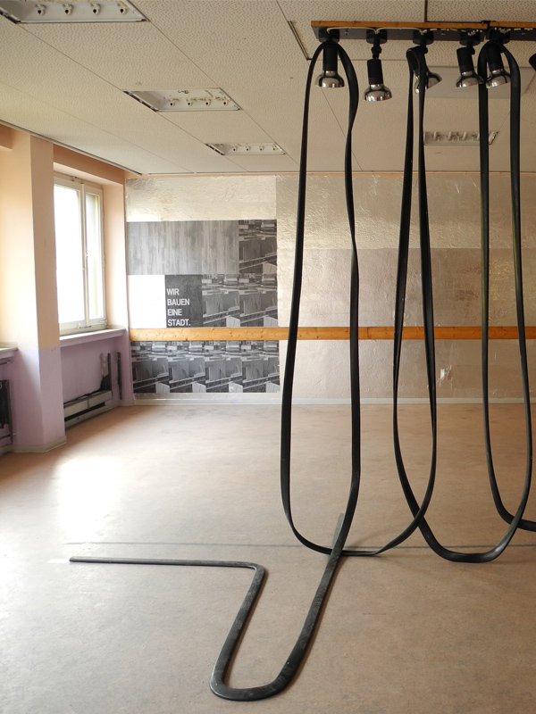 Aufstieg/Abstieg (Handlauf) | Installation | Maße variabel | 2014; Hintergrund: Miriam Schröder | Wir bauen eine Stadt | Wandarbeit | Maße variabel | 2014 (Foto: Miriam Schröder)