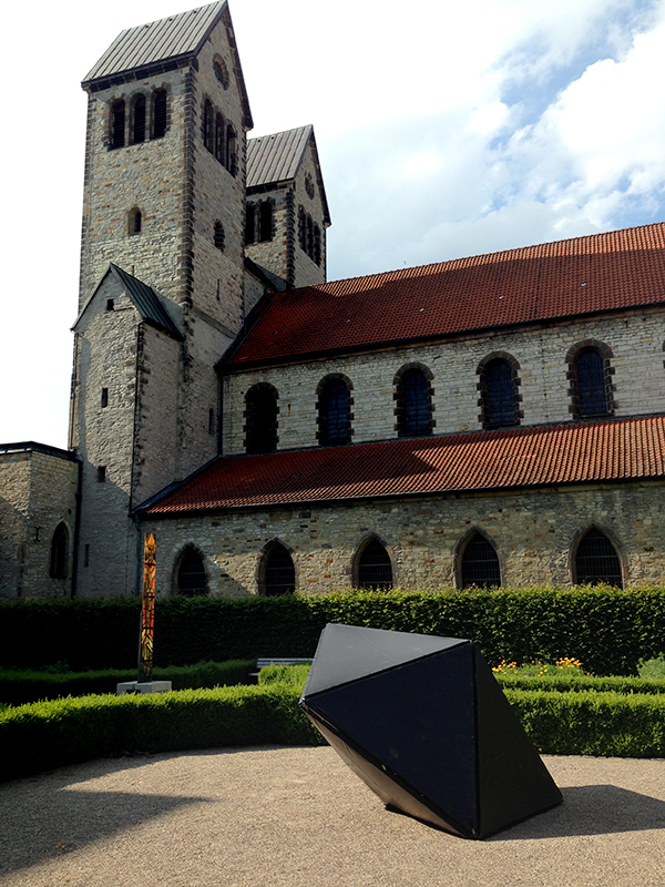 Ich habe mich an dieser Ausstellung mit einer weiteren Permutation der Reihe Rhizaria beteiligt: Die beiden schwarzen Körper im Kreuzgang des Abdinghof scheinen in den Himmel zu weisen, erinnern an Sende- oder Empfangsapperaturen; Monolithen, die in direkter Nachbarschaft zu den Kirchtürmen möglicherweise auch Michelangelos "Erschaffung Adams" evozieren. Und dennoch: Es sind bloß zwei Polyeder - Pentagonbipyramiden oder Johnson-Körper Nr. 13 - die dort abgestellt wurden.