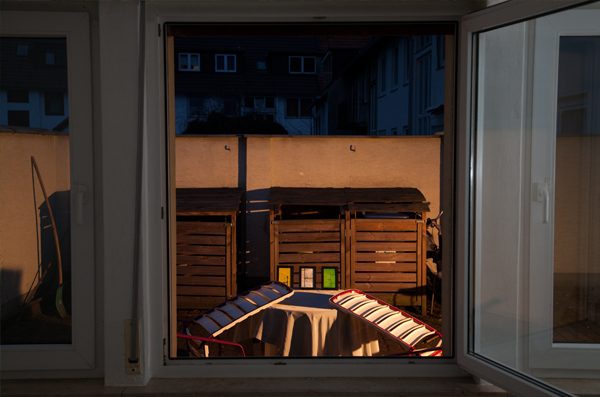 Antenenae (Triptychon) | Ausblick auf einen Hinterhof mit Fotorahmen | 480 x 340 cm | 2013 (Foto: Jan Olaf Scholz)